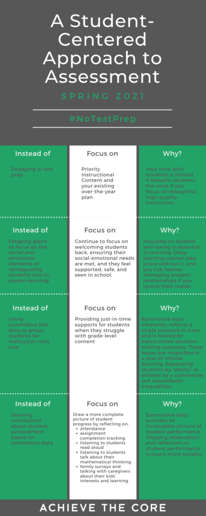 So what is an educator to do? After all, state testing windows open very soon, and some states have said they will test regardless of federal guidance. We have a couple of suggestions for you to consider as you do the hard work of teaching and learning in the upcoming weeks: