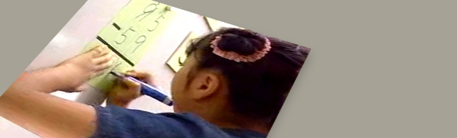 The teacher then asks the students if the result will always be the same when subtracting two two-digit numbers made from the same pair of digits and challenges them to find out. Students can work independently or with partners using the subtraction template. As the students work, the teacher has the opportunity to encourage students to try different digit combinations and support any students who are subtracting incorrectly. After enough time has passed, the teacher has the students put their results (subtraction templates or equations) on the board. (For an illustration of this, please see video, 5:10-6:55)
