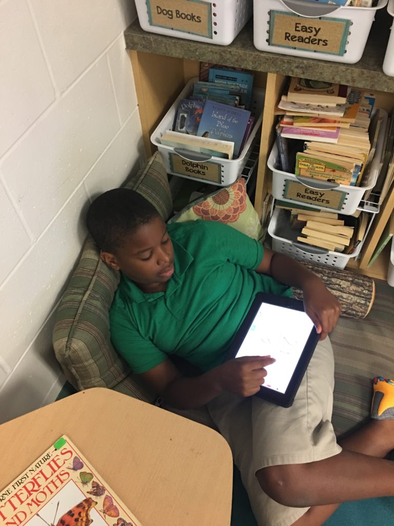 A creative way to expand the availability of technology in your classroom is to partner up with a classroom teacher who has special area for technology that is utilized at a different time than you, and “share” devices. I have buddied up with a first grade classroom. iPads are able to record on Seesaw without utilizing any special equipment such as headphones or microphones, so I didn’t need any other technology. During this time, I worked with a small group while the remaining students used SuccessMaker or IXL on laptops for self-paced mathematics.