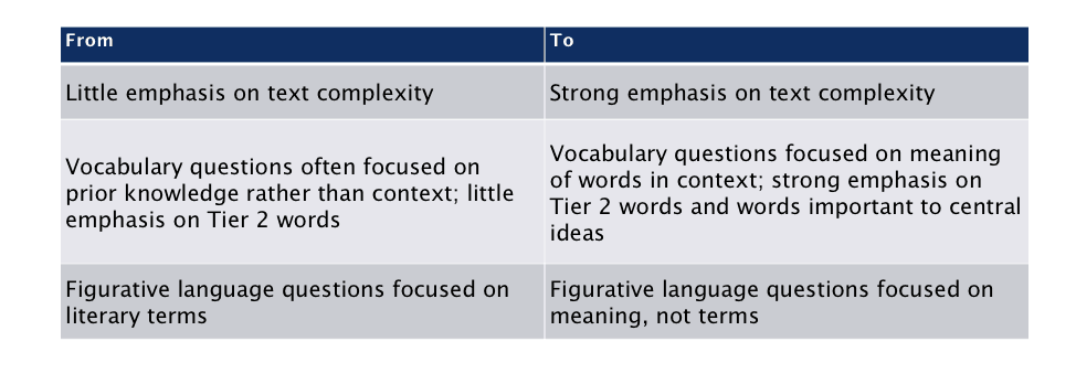 In terms of ELA, do your questions help support major understanding of the text, target tier 2 vocabulary, and require evidence from the text? Check your understanding of these here by going through this aligned assessment and asking yourself, “How does each of these questions help get at the instructional Shifts and reflect the principles in the right-hand column below?