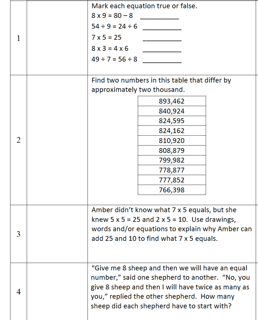 In my state, these principles come down to making sure that we have a balance of problems that are at different Depth of Knowledge (DOK) levels, that problems funnel through the Major Work of the Grade, and that we have a balance of problems that address procedural skill and fluency, application, and conceptual understanding. Test your understanding with a sample activity found below—which element of Rigor is best represented?