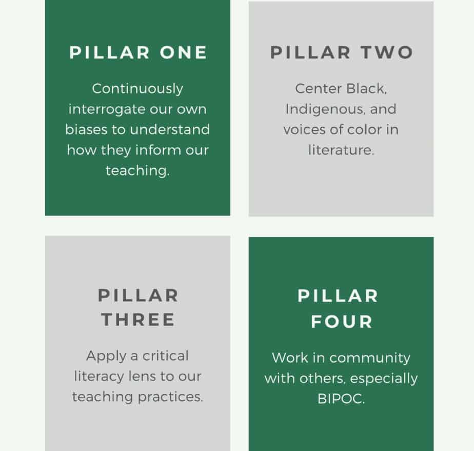 Over the past several years I’ve been reading and reflecting about the way race, privilege, and aspirational anti-racism intersects with my identities as a white woman, mother, person, and literacy specialist. I had the opportunity to attend Lorena Germán’s Coffee and Conversations session this fall and have been thinking deeply with my colleagues about attending to the four pillars presented by the founders of Disrupt Texts, starting with interrogating my own biases in my role and my work. Here are some reflections.