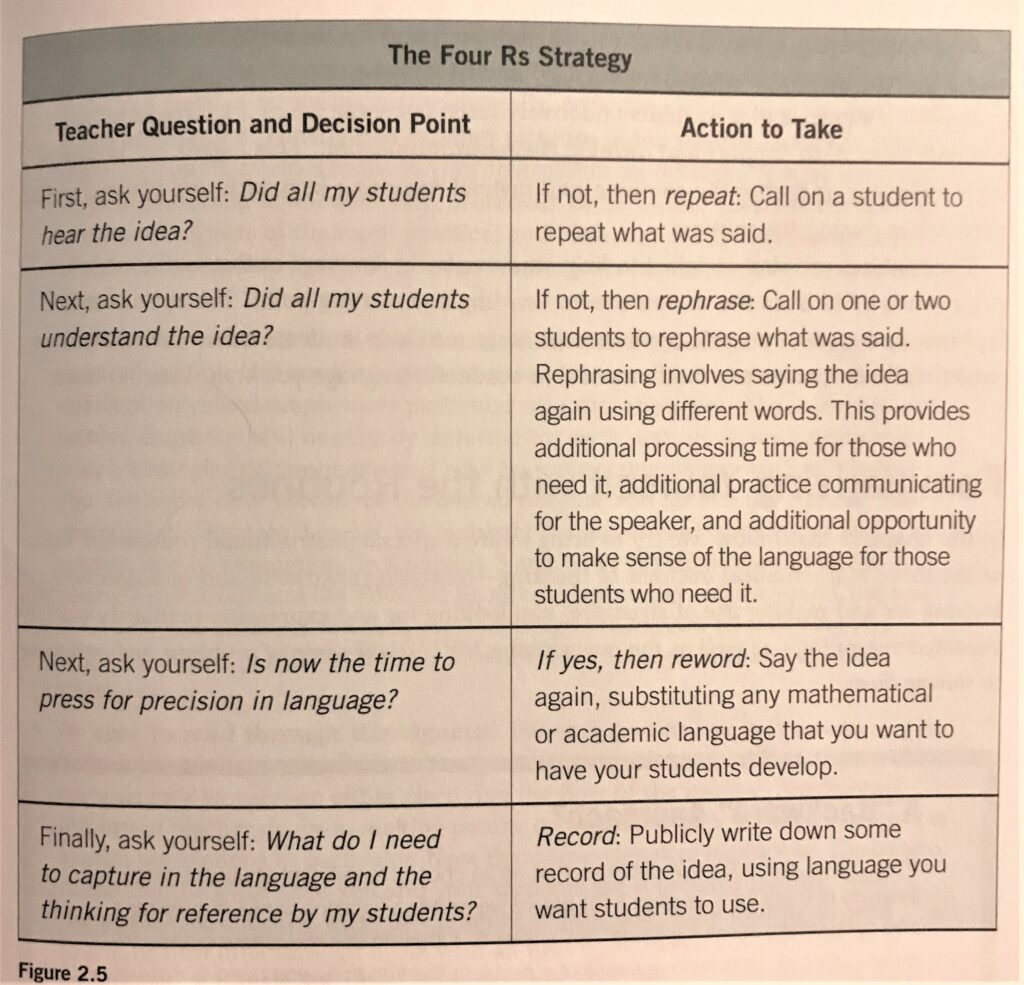 The Four Rs Strategy” from Routines for Reasoning: Fostering the Mathematical Practices in All Students by Grace Kelemanik, Amy Lucenta, and Susan Janssen Creighton. Copyright © 2016 by Grace Kelemanik, Amy Lucenta, and Susan Janssen Creighton. Published by Heinemann, Portsmouth, NH. Reprinted by permission of the Publisher. All Rights Reserved.